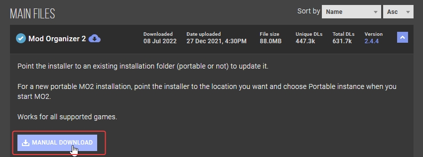 2. Open the Mod Organizer 2-6194-2-4-4-1640622655.exe file it downloaded. The file name might vary.